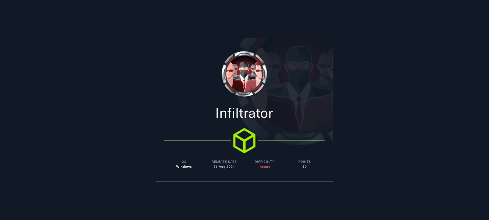 На­ша цель — получе­ние прав супер­поль­зовате­ля на машине Infiltrator с учеб­ной пло­щад­ки Hack The Box. Уро­вень слож­ности задания — «безум­ный».